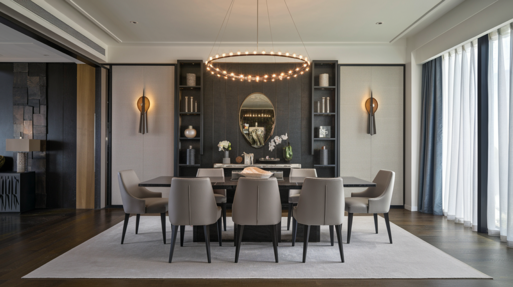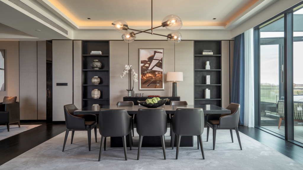 Modern dining room fixings, more than any other element within the room, may include furniture, light design, or decorative embellishments, are central to the aesthetics as well as the functional aspects of the space. The right choice of components helps achieve a stylish and at the same time, functional dining room that allows comfort when hosting a gathering.